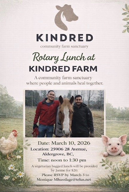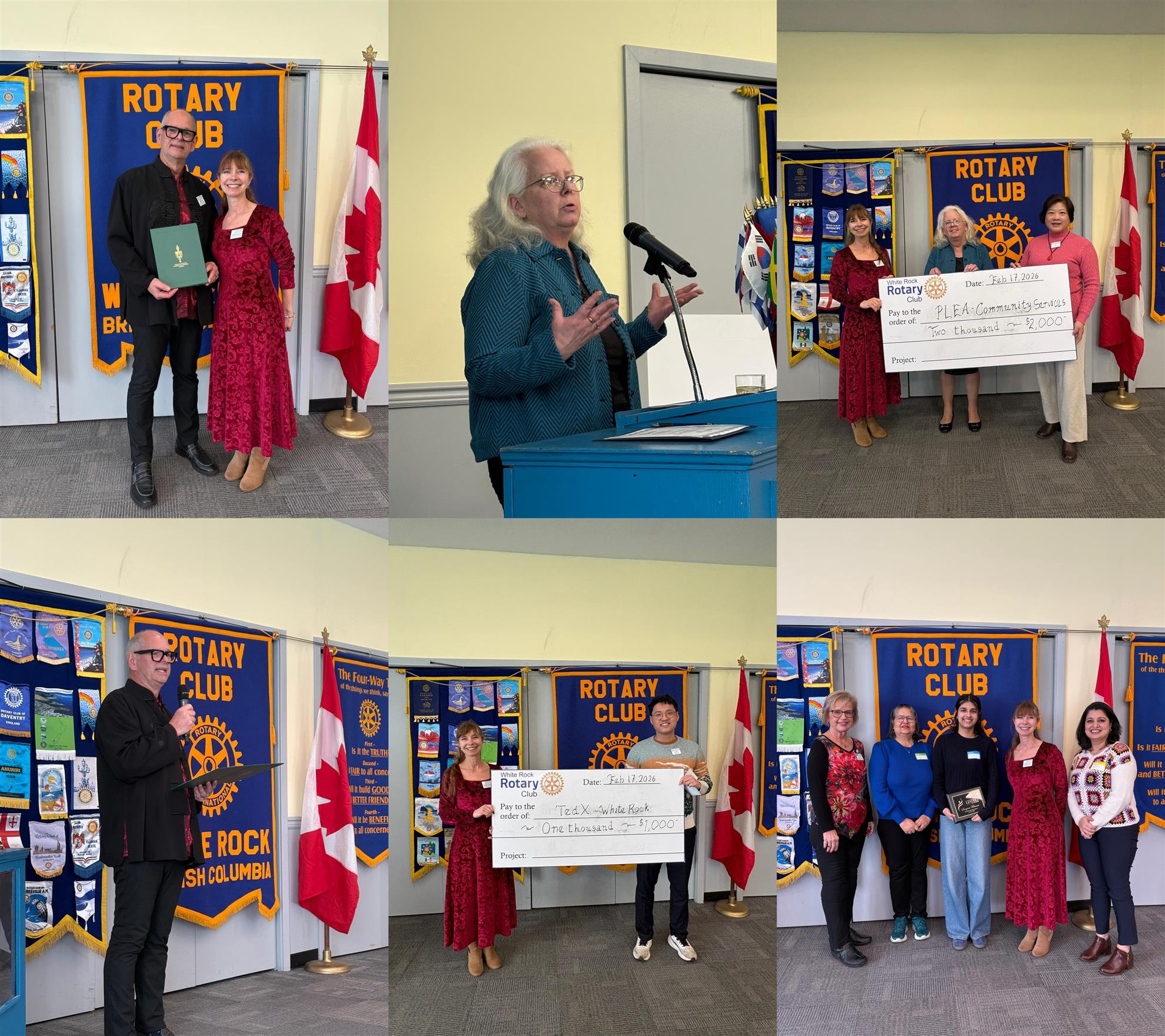 We were pleased to welcome Maura Fitzpatrick from PLEA Community Services as our guest speaker. The Club also recognized Sargam Bhanot as our Leaders of Tomorrow winner, joined by her mother Bhavita Sharma and grandmother Anita Sharma. We were honoured to welcome Ernie Klassen, MLA for Surrey South, who presented an official message from the Prime Minister of Canada in recognition of Lunar New Year.